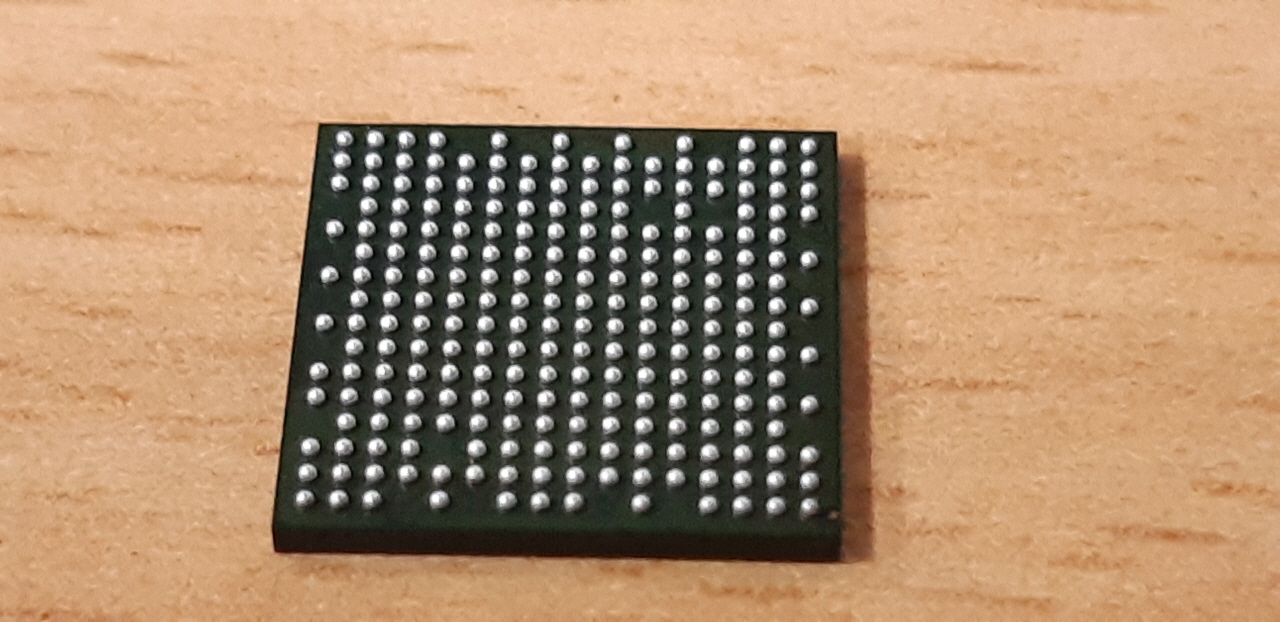 i3 SoC 뒷면은 0.65mm 피치의 Ball-Grid-Array (BGA)가 보인다.